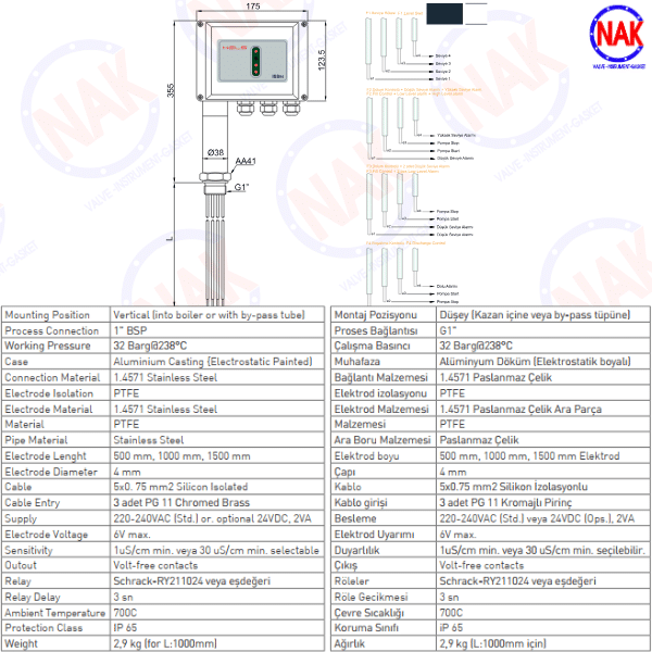 Cảm biến mực nước lò hơi HELS HLC-100 là thiết bị đo và kiểm soát mực nước chuyên dụng cho lò hơi, deaerator, bồn condensate và các bể chứa chất lỏng dẫn điện. Sản phẩm hoạt động dựa trên nguyên lý đo độ dẫn điện, cho độ chính xác cao, ổn định và an toàn trong môi trường áp suất và nhiệt độ cao.