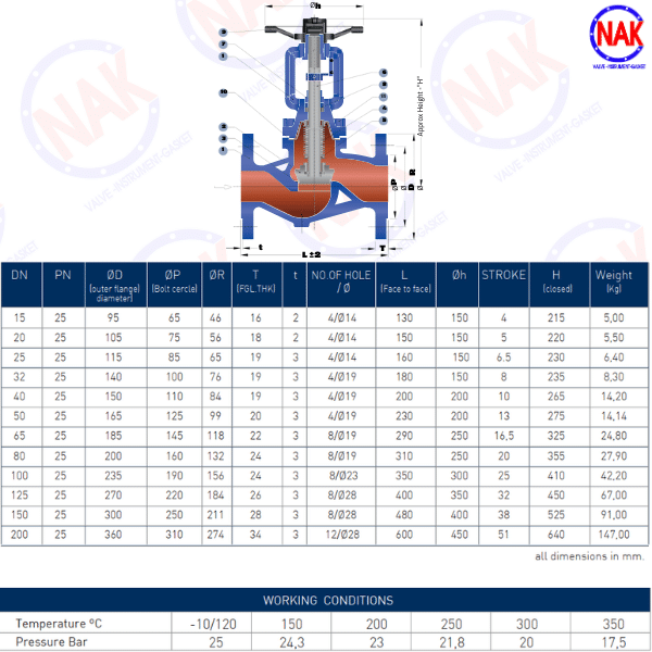 - Seat và Plug Hard Faced tăng khả năng chịu mài mòn, phù hợp hệ thống hơi nóng vận hành liên tục.